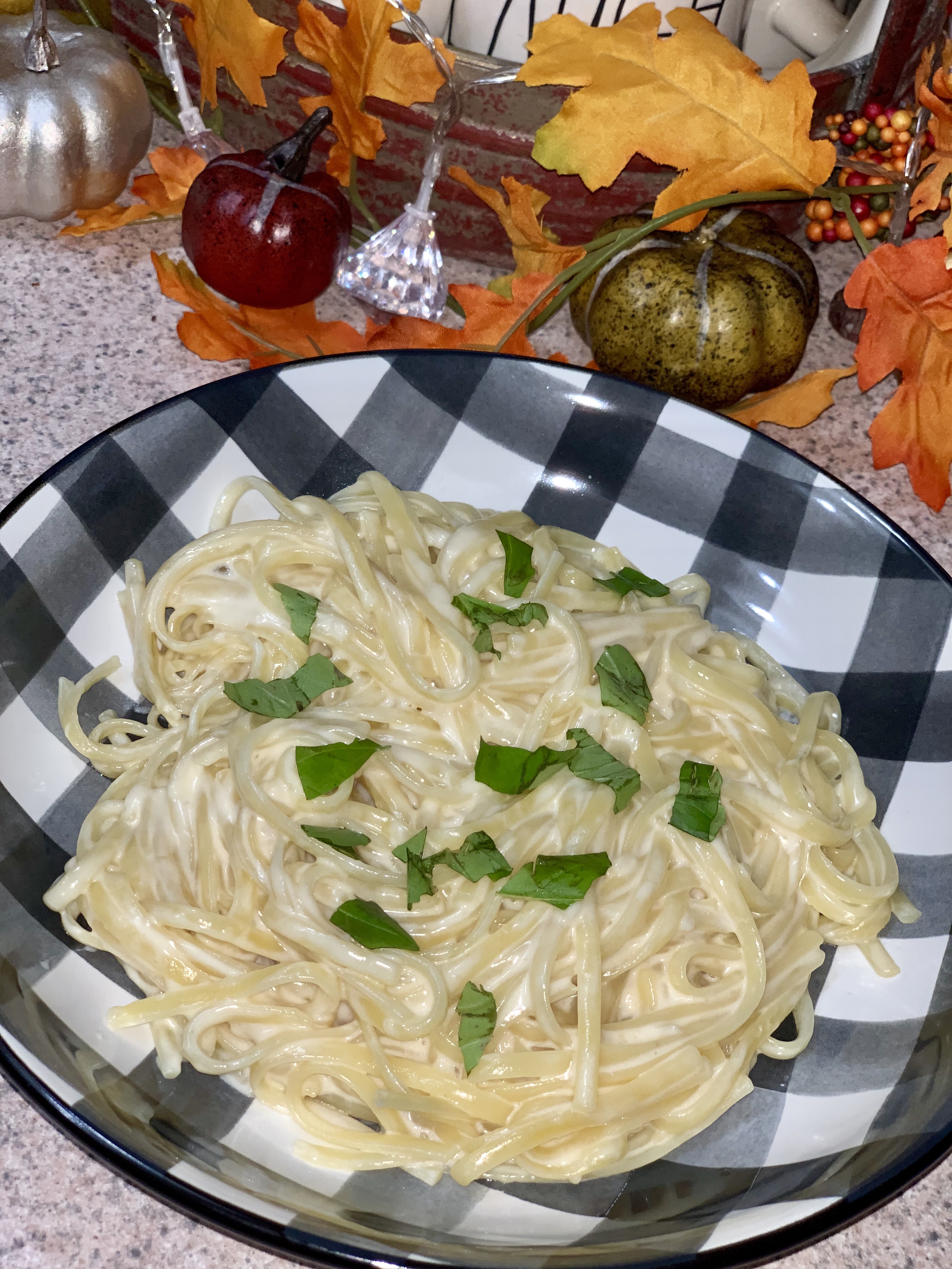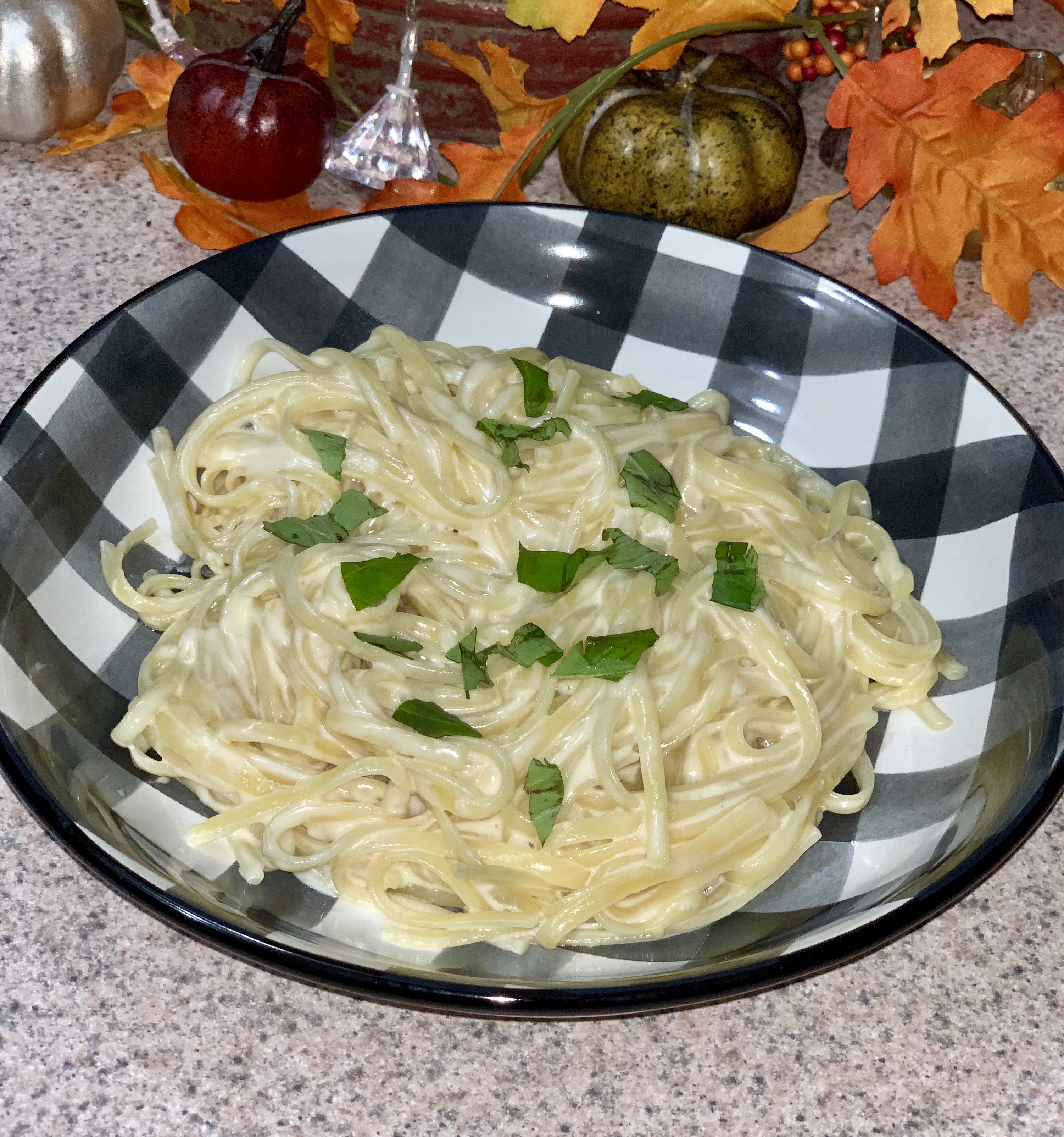 She’s one that loves alfredo – and she prefers it without protein – just sauce and pasta. And, that’s what she wanted for dinner. Unfortunately, I didn’t have enough parmesan or cream to do a full recipe – so I did a recipe just for her.