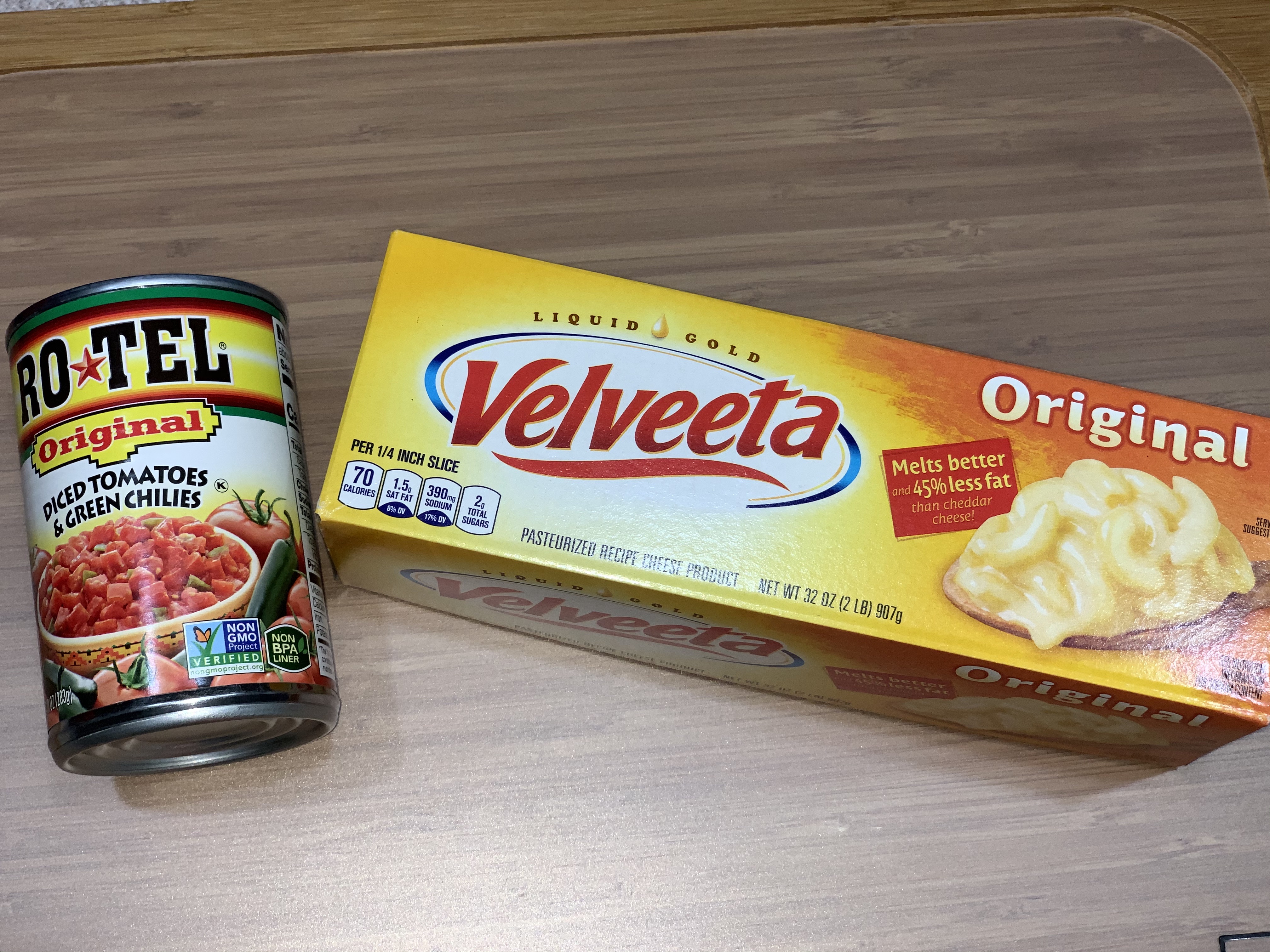 This ‘recipe’ (if you can call it that) has been around forever. I first remember my grandma making it, when I was a teenager. The cheese ‘dip’ or ‘queso’ consists of 2 things – velveeta cheese and rotel tomatoes and chilis.