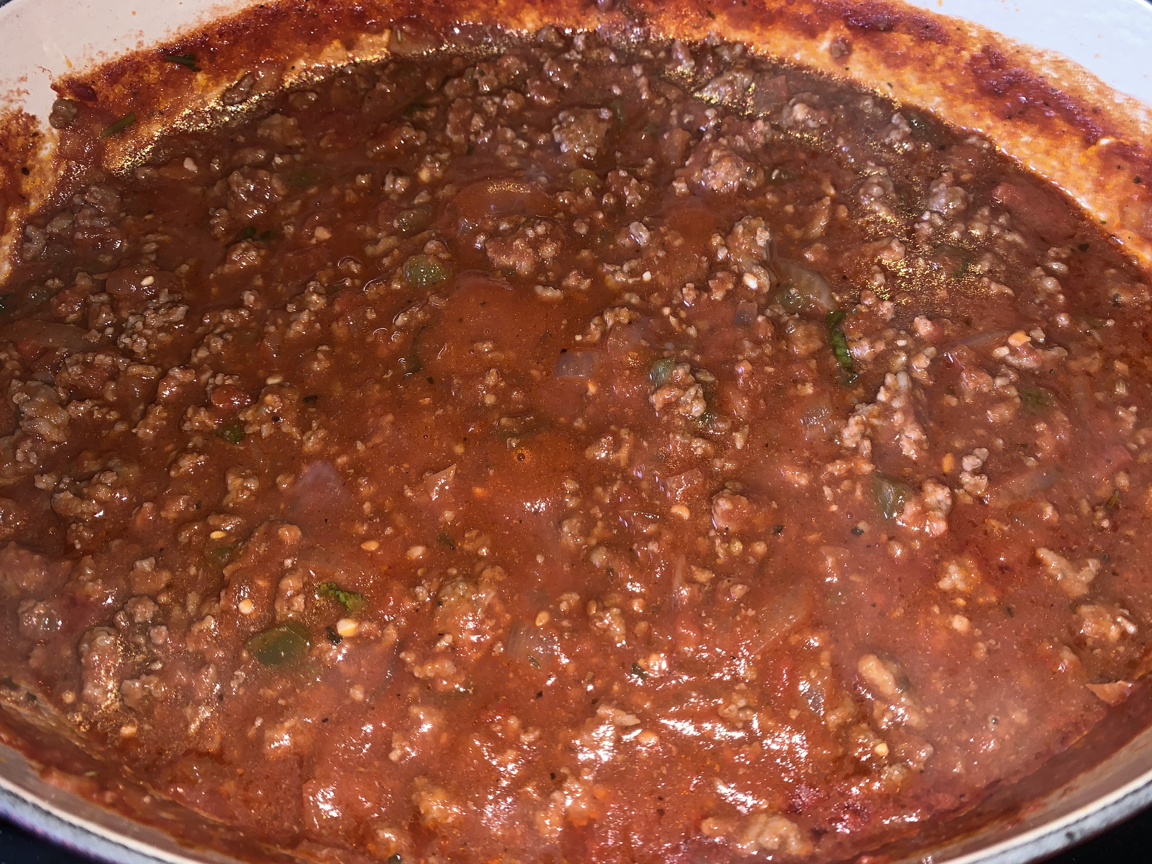 4-5 cups of meat sauce (you can use jarred sauce and meat or my recipe for homemade meat sauce)
