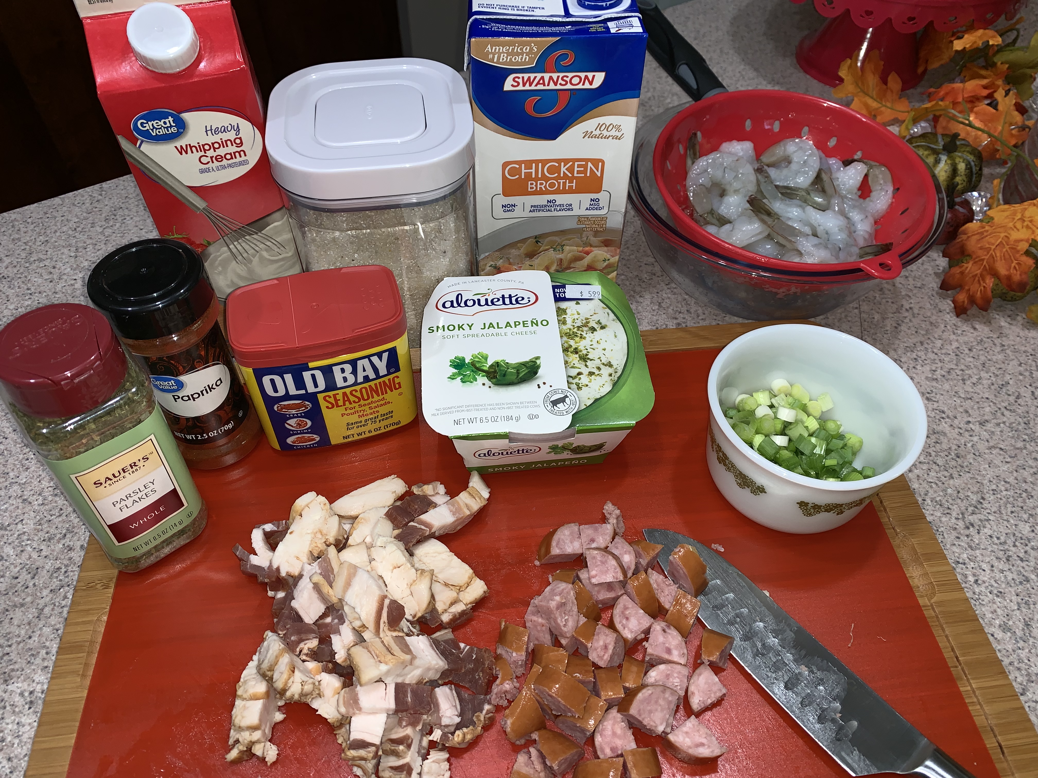 Since I was cooking just for myself (probably for my lunch and my dinner), I decided to make this recipe a ‘for two’ (or 1 really hungry person!) recipe. So, all of my ingredients are sized accordingly. I could have made a larger dish, but I don’t love reheating shrimp.