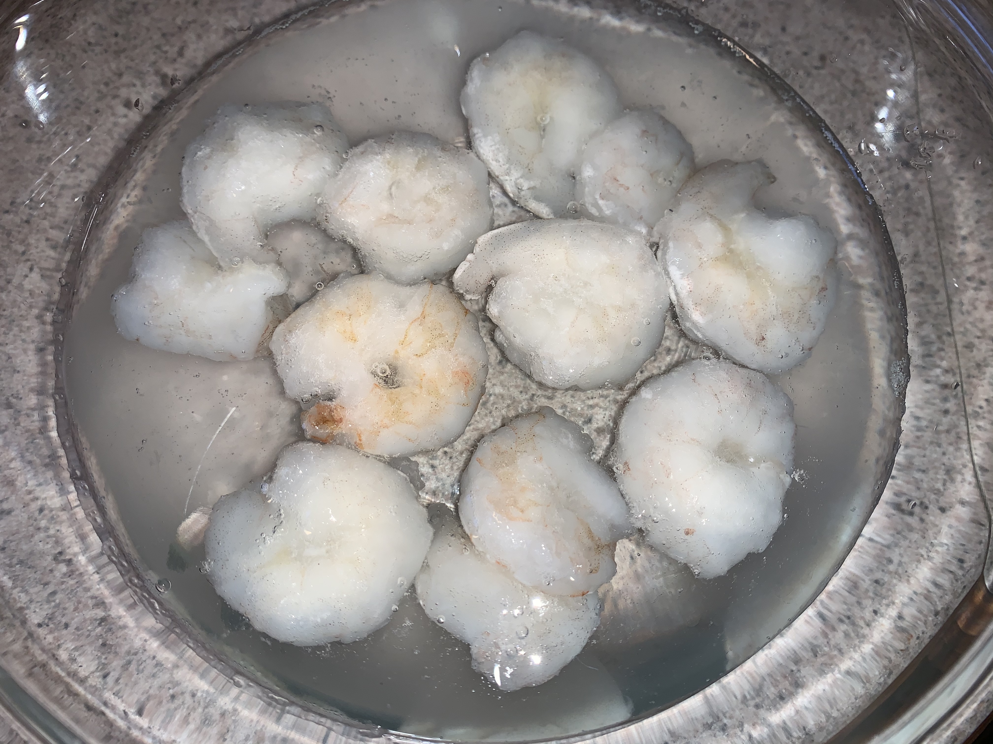 I use frozen shrimp, so I took out enough shrimp for the dish and defrosted them in cold water.