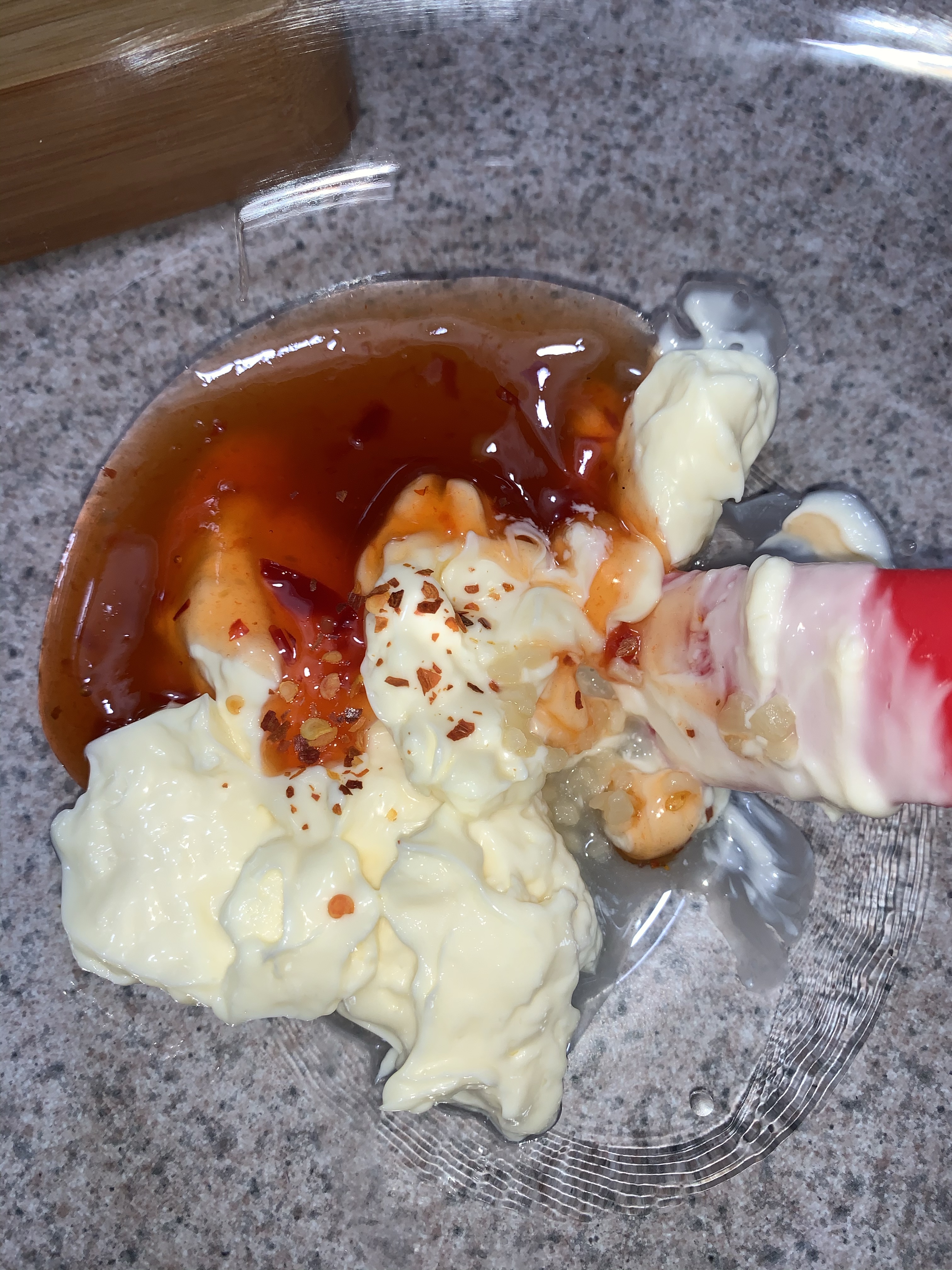 I knew that the bang bang sauce had mayonnaise (I know that seems odd for pasta, but trust me, it’s good!), sweet chili sauce and sriarcha. I decided to add a little garlic, red pepper flakes and a little bit of lime juice to mine.