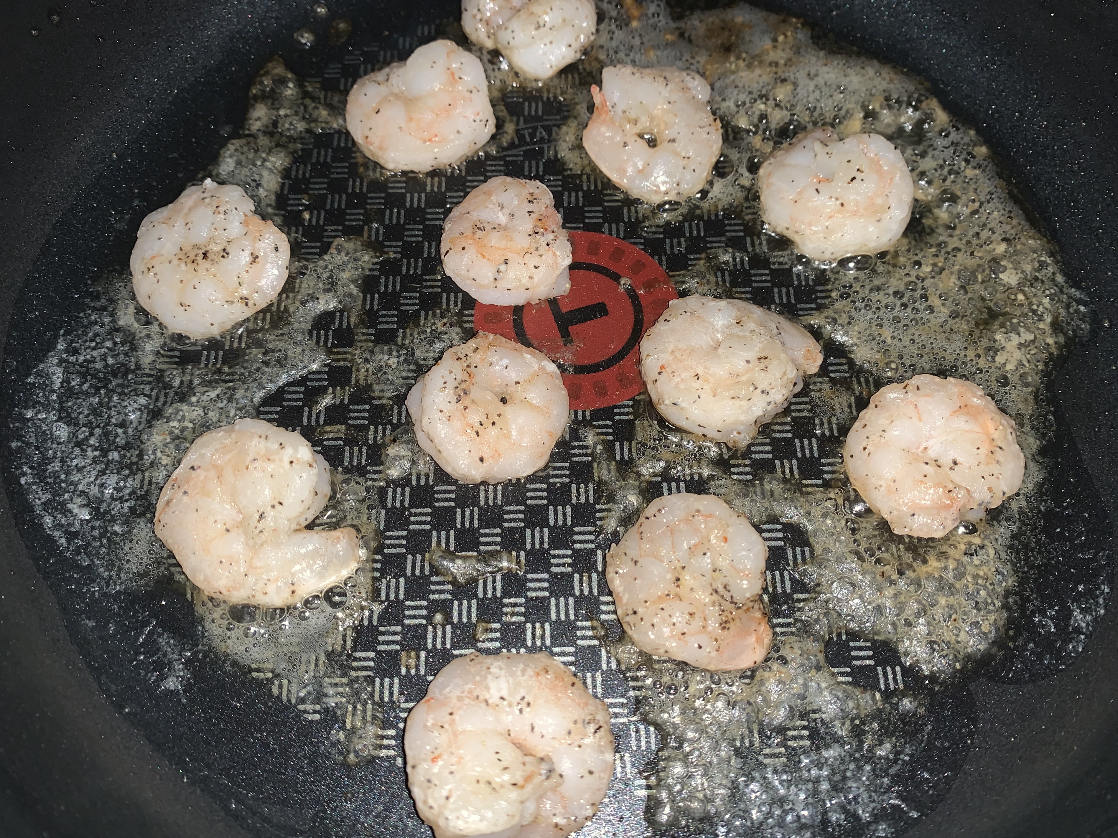 After my shrimp were thawed, I sauteed them in a hot pan with 1/2 tbsp of butter.