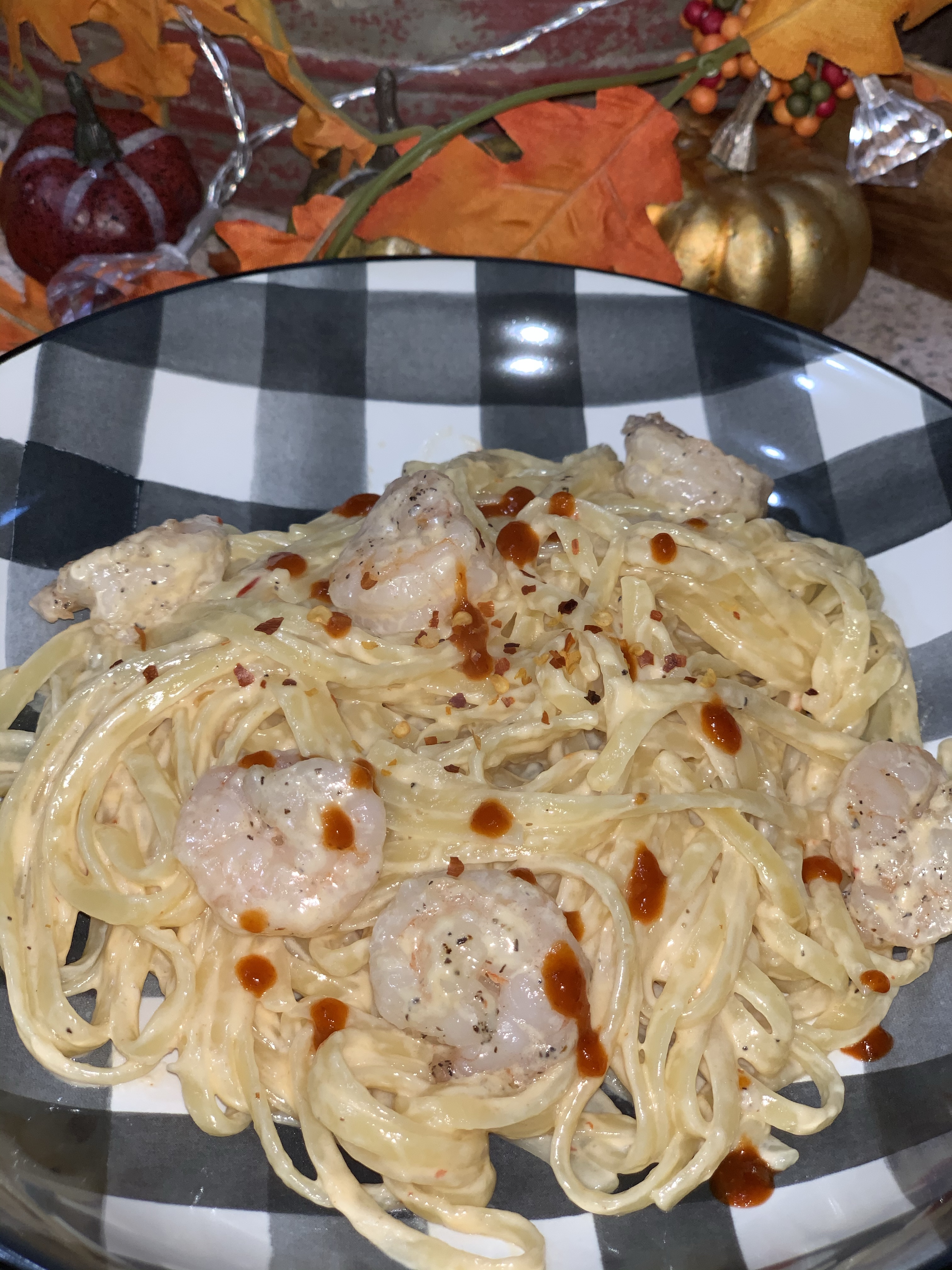 I just drained the pasta and poured it into the skillet with the shrimp. Then I added in the bang bang sauce (in hind sight, I probably would have added the bang bang sauce to the shrimp first).