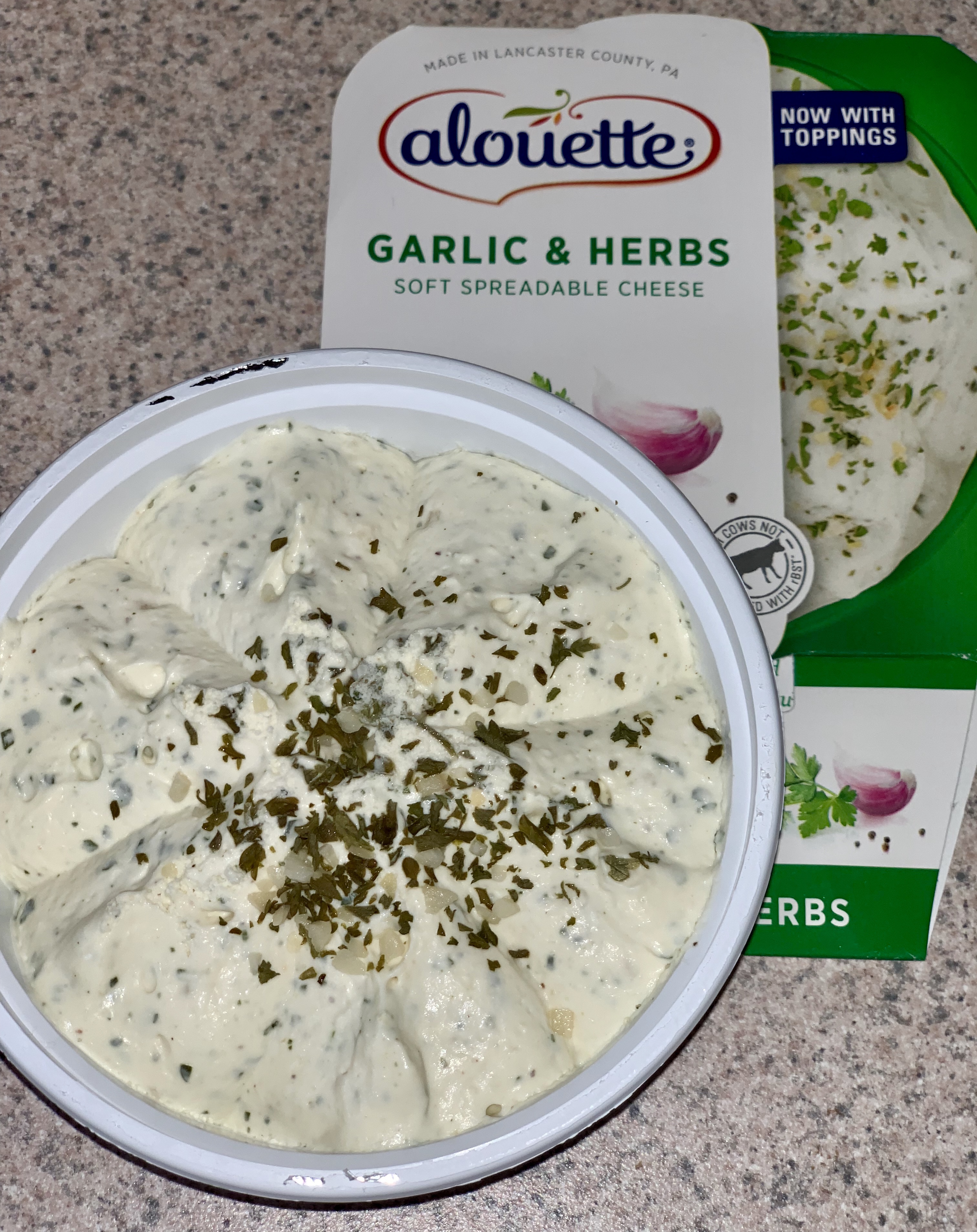 The ingredients for this recipe are pretty simple. Most everything is easy to find. The most elusive ingredient may be the Alouette spreadable cheese – but, make sure you’re looking for it in the deli section of the grocery store, as many stock it there, rather than with the other cheeses.