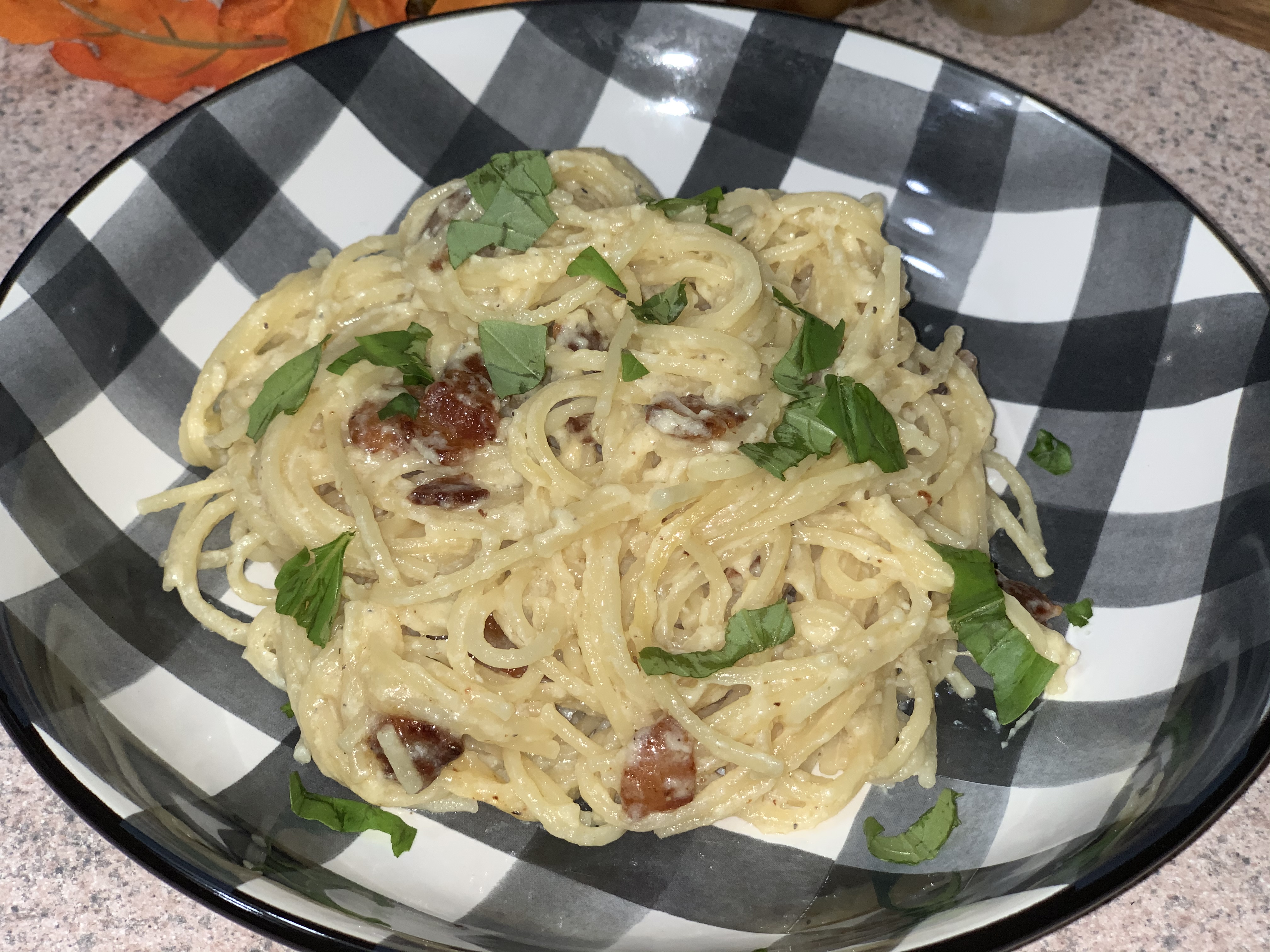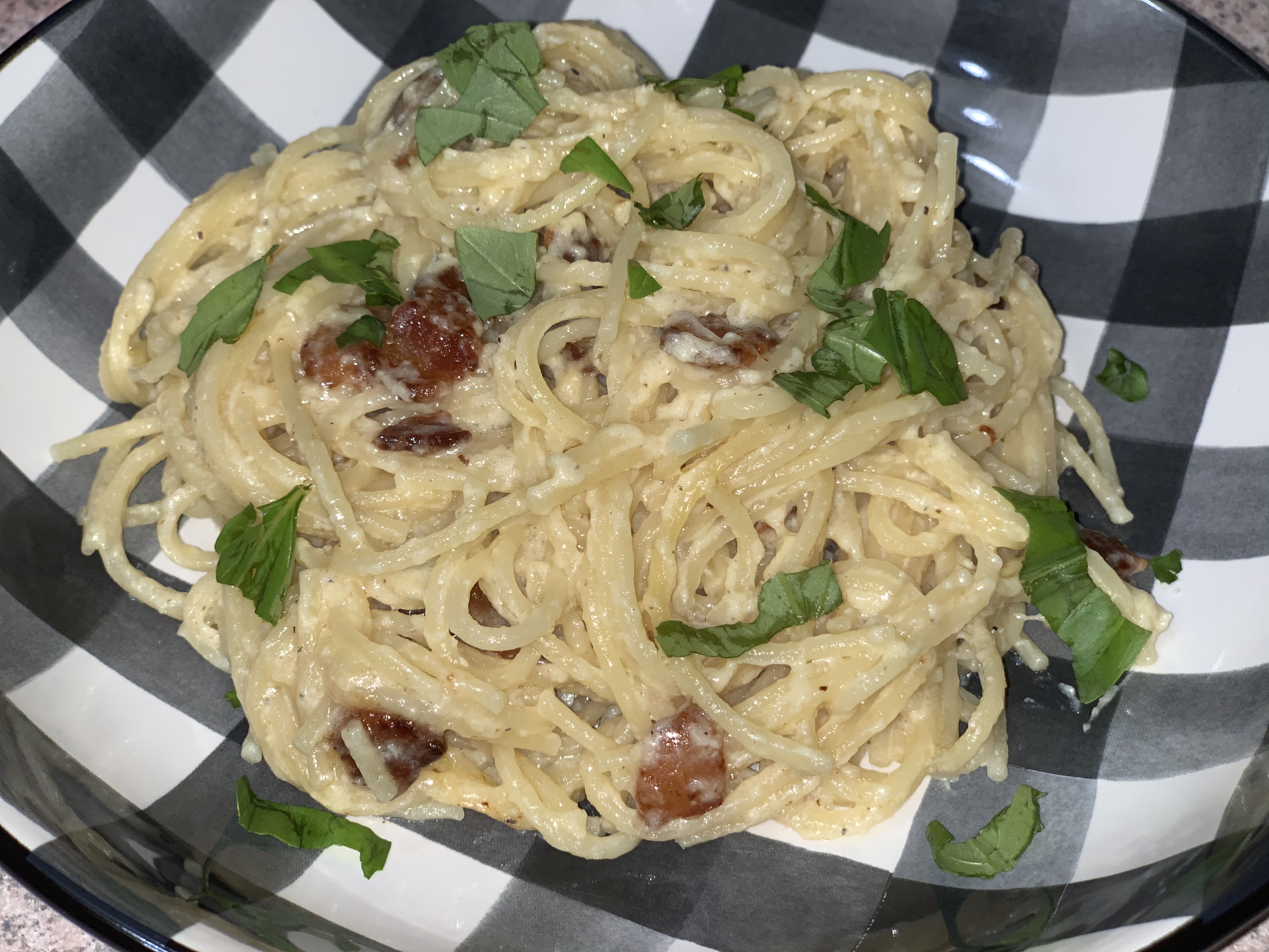 I’ve had pasta carbonara in restaurants many times, but had never tried my hand at making it until now. Since I was making it for one, I just tried to figure out the measurements – and I learned a few things in doing so.